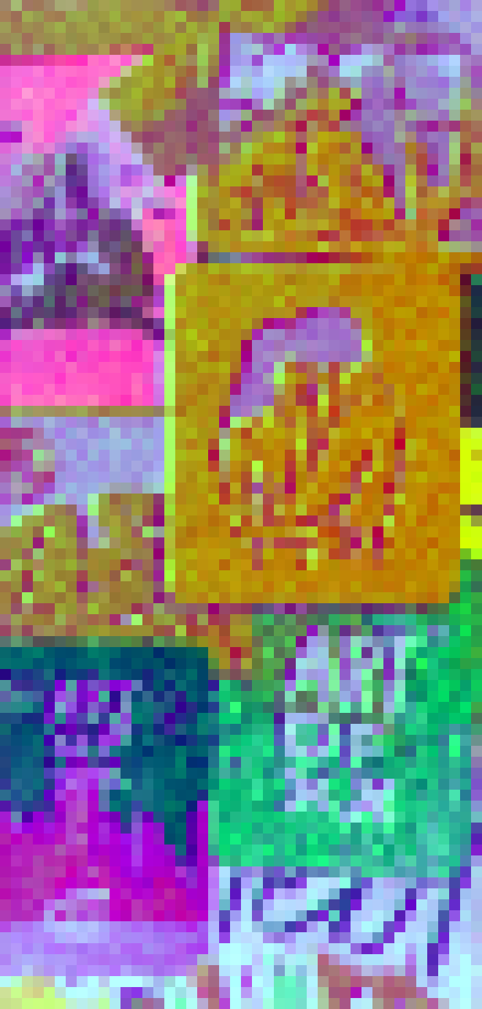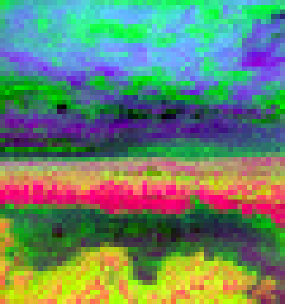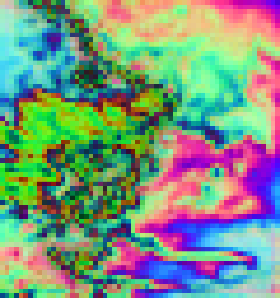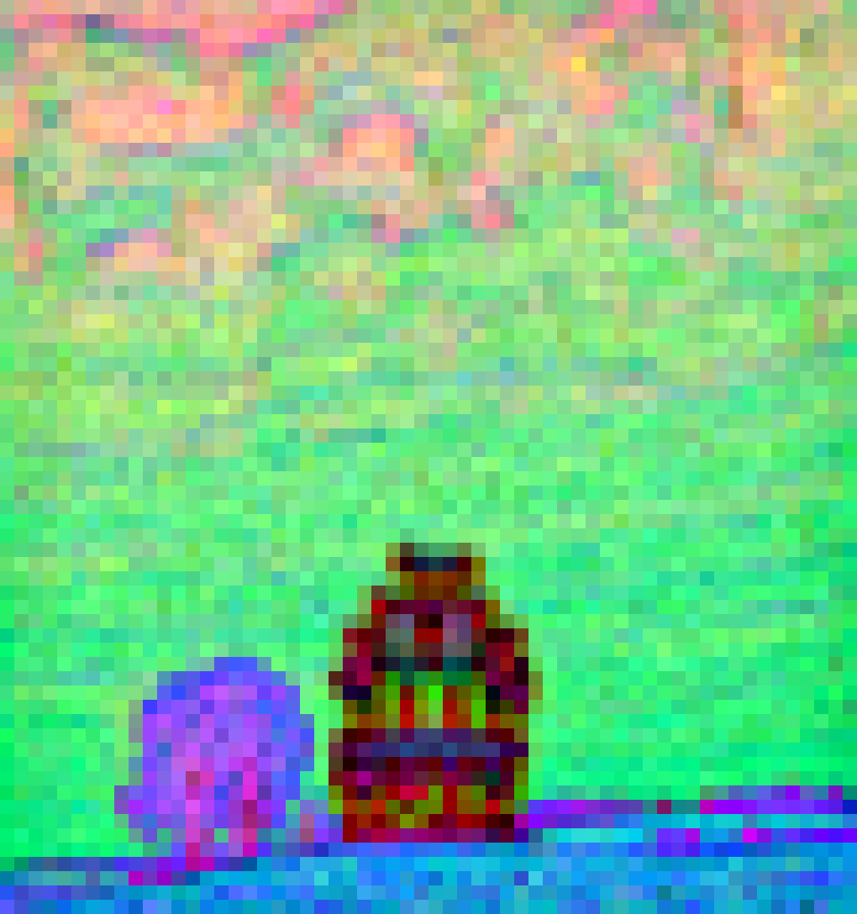 Top 3 PCA components of encoder latents mapped to RGB. Colors are aligned across models via spatial correlation matching. Reruns (same encoder) are omitted.